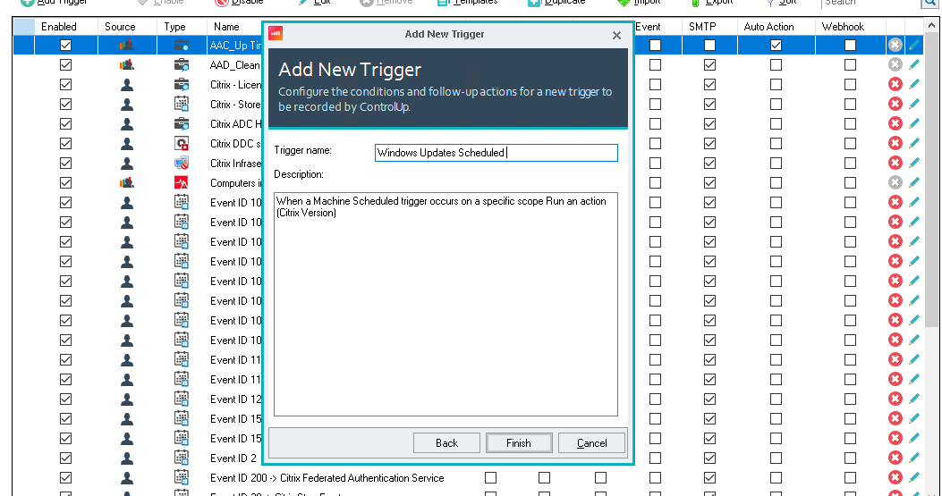 - In the ControlUp Console, navigate to the Triggers page.
