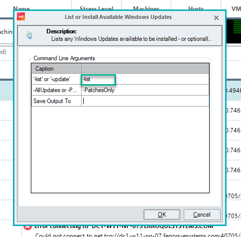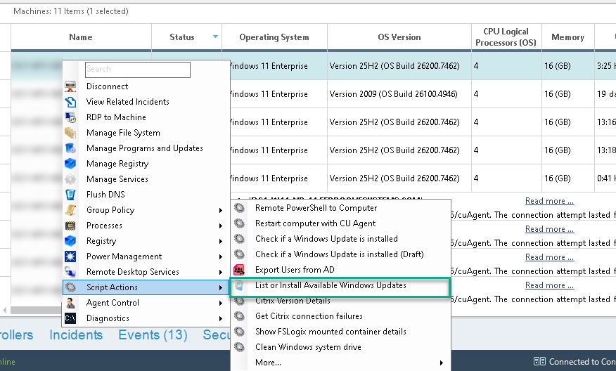 - Right-click the selected machine(s), and in the pop-up menu, choose “Scripts > List or Install Pending Updates”.