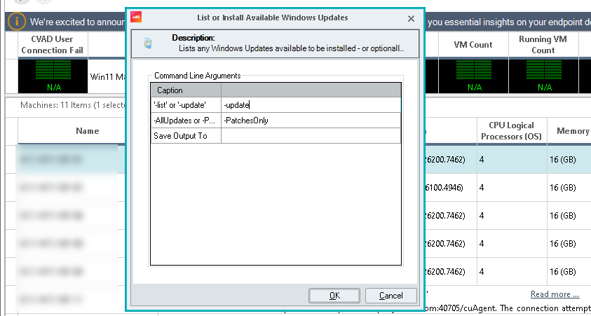 The objective of this phase is to install all approved/pending Windows updates using ControlUp automation.