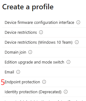 - Platform: select Windows 10 or later and Profile type: select Templates > Endpoint Protection > Create.
